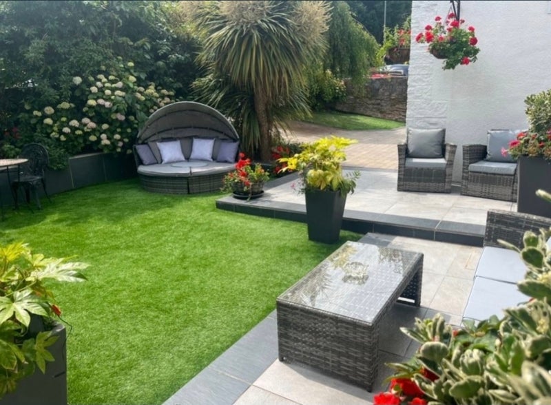 Private Outdoor Oasis: A stunning south-facing garden with artificial grass, patio areas, and premium rattan furniture—ideal for enjoying the sun or shade.