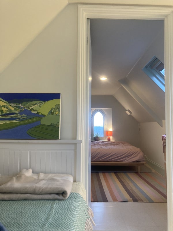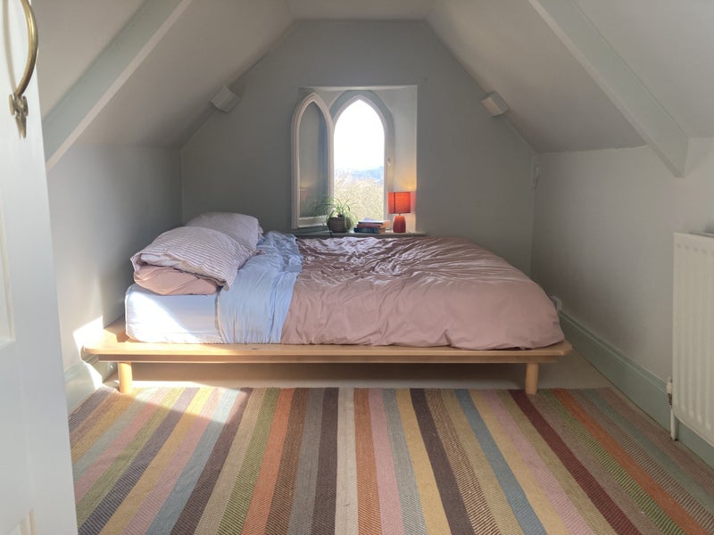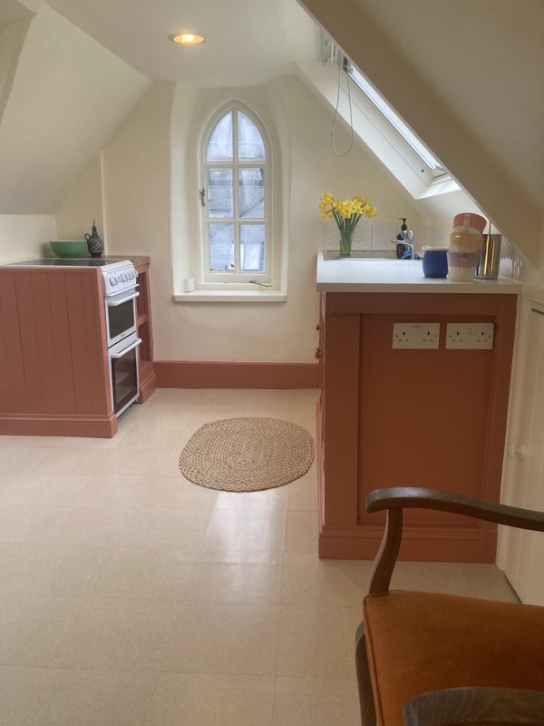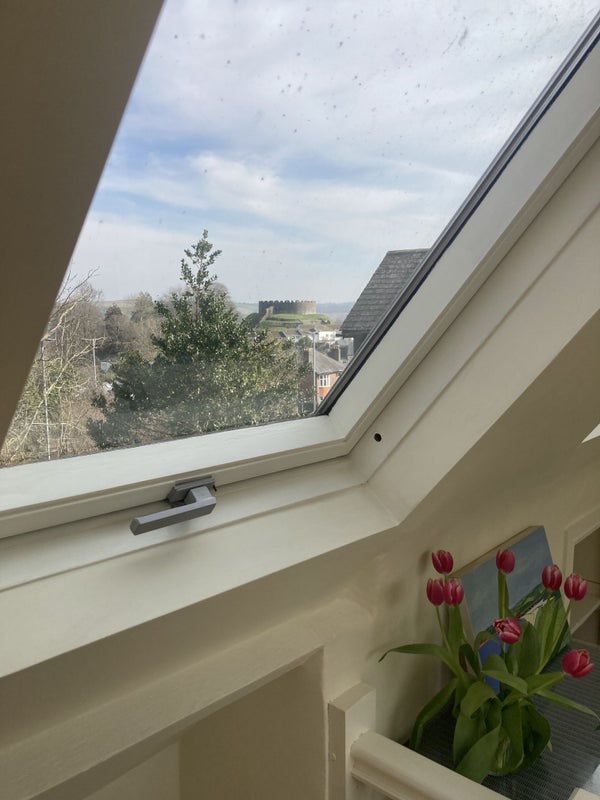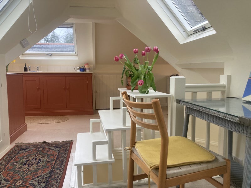 The attic space is the whole top floor of our house & we live downstairs, and have two teenage children and a cat. We are a few minutes walk from Totnes high street. The flat comes furnished.