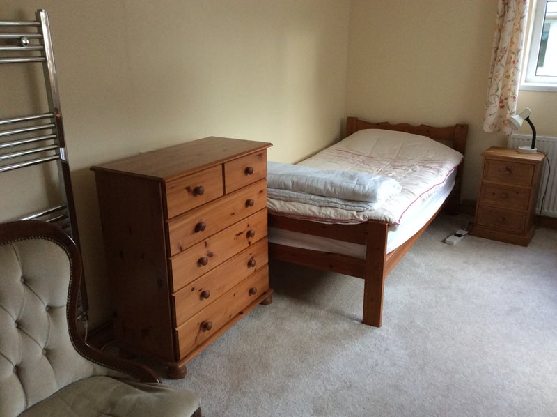 Annexe to main house with shower and toilet on ground floor. Bright and airy. Furniture can remain or be removed. Share kitchen with owner. Quiet and spacious location in Bridgetown. Anyone considered. I am out a lot and am pretty self contained. Seeking someone ideally working although not necessarily full time. Garden and drive available for parking outside. 15 minute walk from town.