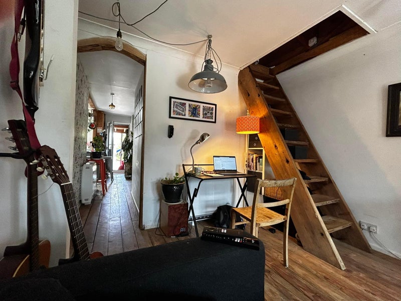 A cute rustic home in the edge of town, front and back garden, open fire, animals considered. 15 min walk from town, on bus route, near local shop. Would suit someone working away from home to keep electric heating bills down in winter but there is a big Woodburner which does heat the whole house. The bedroom has a double bed on the mezzanine so does require some