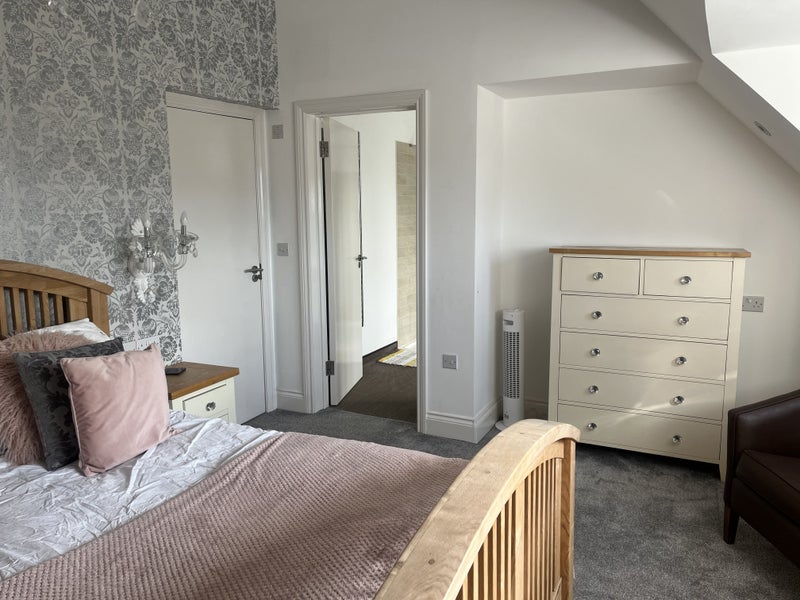 Gorgeous double bedroom with large en-suite and use of office space in next door room and small kitchen. Top floor of beautiful large house. Not suitable if you have mobility problems. Large garden and plenty of parking on the road (non restricted) large drive but all spaces currently in use. This is a family home with 1 long term lodger and I am looking for another. Short term is ok as house will be going up for sale in a few months time. Room can also be let on a short term weekly basis. Looking for a working person with a happy disposition that is used to a busy family household. Rooms are quiet as have soundproofing underlay. TV in room. This is a fully furnished room with no room to store or house any furniture. We have a pet Pug who is very friendly. Council Tax Band G.