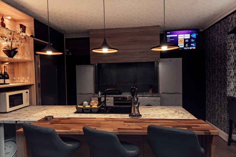 - New kitchen and communal area, with 4 fridge/freezers, washing machine, tumble dryer, television and standard cooking equipment/cutlery provided