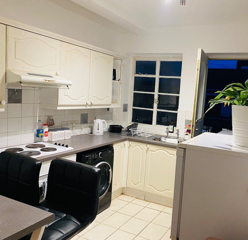 The kitchen and hallway are all spacious and the apartment has high ceilings throughout. The kitchen also has a breakfast bar so you can eat and socialise there too.