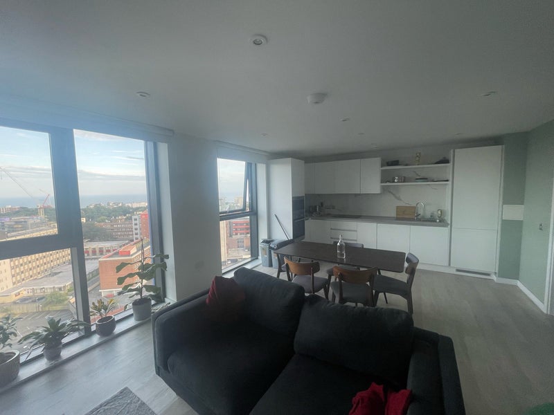 3 bedroom open plan apartment on the 11th floor of the Helm, Bournemouth. One bedroom available from November 2024.