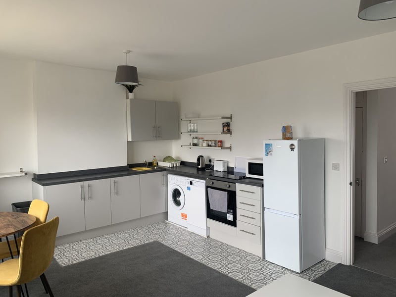 Large double bedroom with sea views. Beautiful open pan living room and kitchen with sea views. Bathroom with separate walk in shower. All newly refurbished. ( sole use with two other housemates). Single occupancy only. All bills included. Good WiFi. On street parking (no ORP). Currently two other housemates who are considerate, friendly, sociable, clean and tidy. Moments to the sea and sea views. Great location.