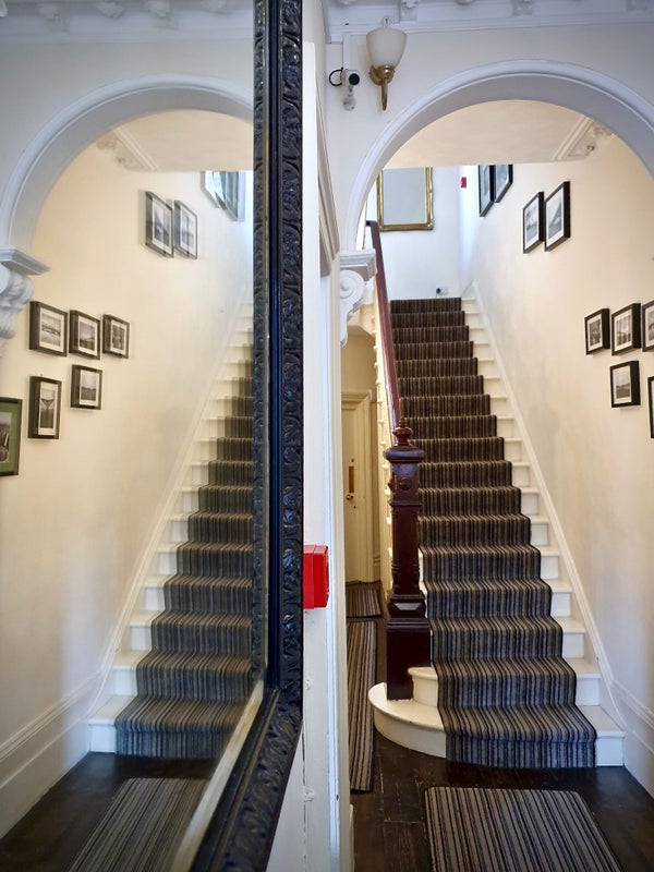 Double Room (For 2 persons) features high ceilings, carpet flooring, fresh bathroom, Freeview TV and mini fridge. This is a perfect Room for a single looking to stay in a perfectly central yet quiet location in Bournemouth. Free Wi-Fi and quiet location. Access to 2 lounges at ground floor of this charming and elegant Victorian style hotel. . All bills included.