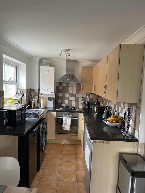 The kitchen is fully equipped - I have left all of my kitchen utilities, plates, cups. coffee machine - feel free to cook or use any of the equipment!