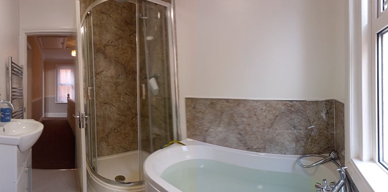 Besides the ensuite (with bath & overhead shower), a newly installed WC/bath/shower room is shared between the two other rooms, along with a nice, clean, bright newly fitted kitchen/breakfast room.