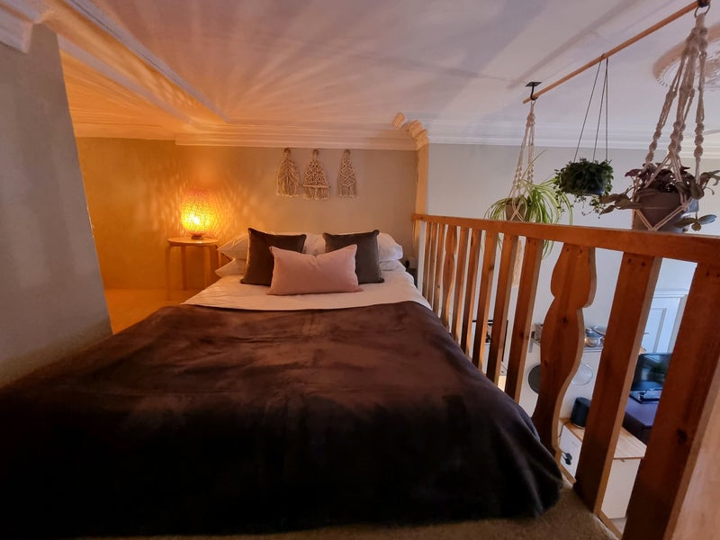 Bed on mezzanine level.
