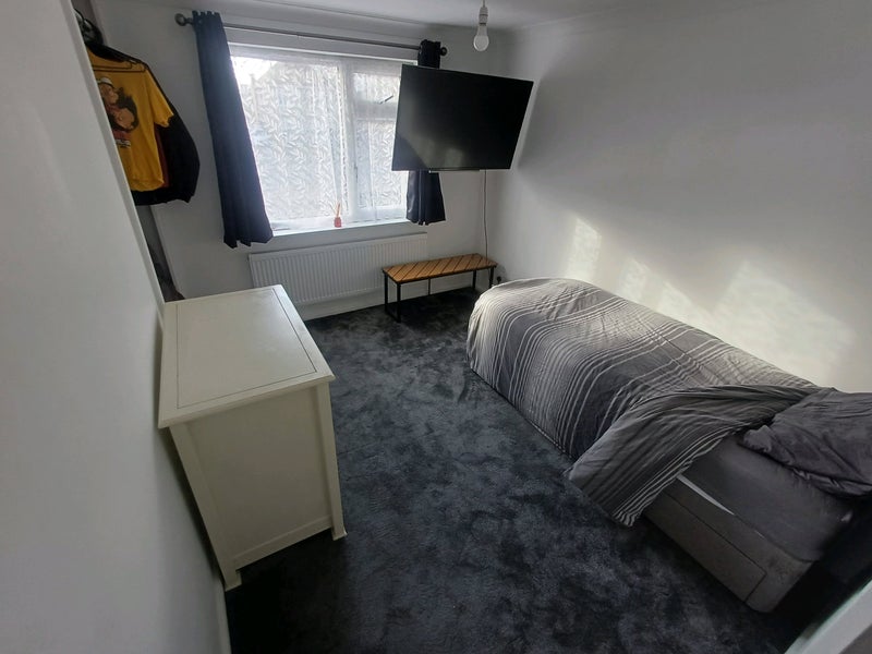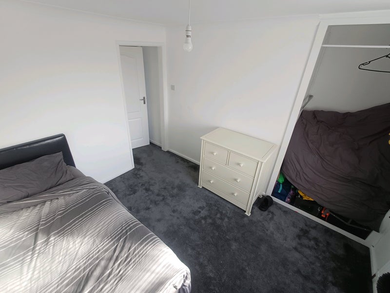Room 2 is a small double 3 x 4 meters or can be used as a large single it is located upstairs next to the bathroom and has a built in wardrobe that can be used as a desk area or something different its upto you. atm it has a single bed a desk and chest of draws which can be removed if you don't want it.