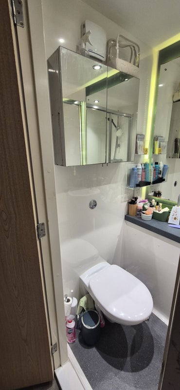 En-Suite room in 6 bed flat to rent at Oxford Point Accommodation in Bournemouth. Room consist of en-suite bathroom with shower, double wardrobe, desk and small double bed.