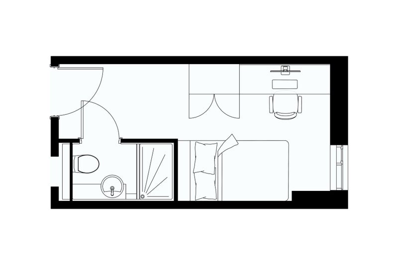 Located on floors 14-15, these en-suite rooms feature stunning sea views, a small double bed, ample storage, plenty of workspace, and your own private bathroom. You’ll also share a spacious kitchen and living area, perfect for socialising with your three other flatmates!