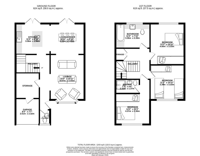 Upstairs, you’ll find three well-proportioned double bedrooms and two bathrooms, offering excellent space and flexibility for family living or professional sharers.