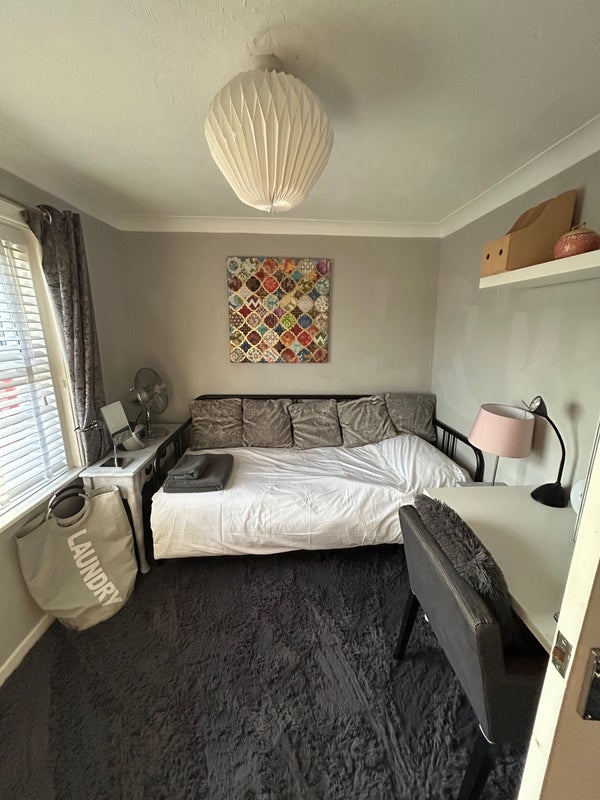 Furnished double room available in comfortable home close to Kings Park and stadium. Walking distance to shops and buses, 10 minutes from Bournemouth town centre and beach. Close to train station. Shared bathroom. Clean and tidy house that is quiet. 1 dog. Bills and internet included. On road free parking. Room can have a single or double bed in it. Has wardrobe and chest of drawers with bedside table. More updated photos to come, waiting for current tenant to move out. 2 double rooms available. Please feel free to call to discuss and to come and visit.