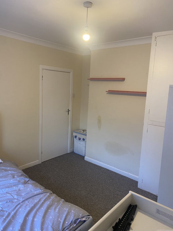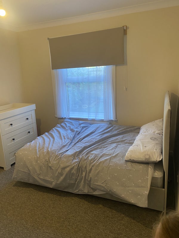 Bed, wardrobe and Chester of draws all supplied. Small tv.