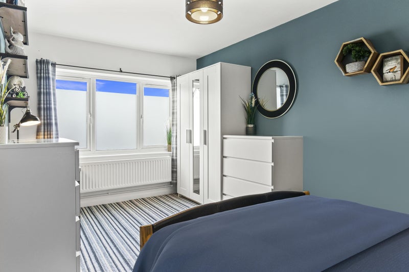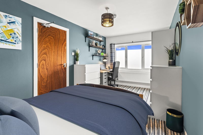 A newly decorated, large, modern, double room with brand new furniture and lots of storage. Complete with designated workspace, the room is perfect for those who work from home.