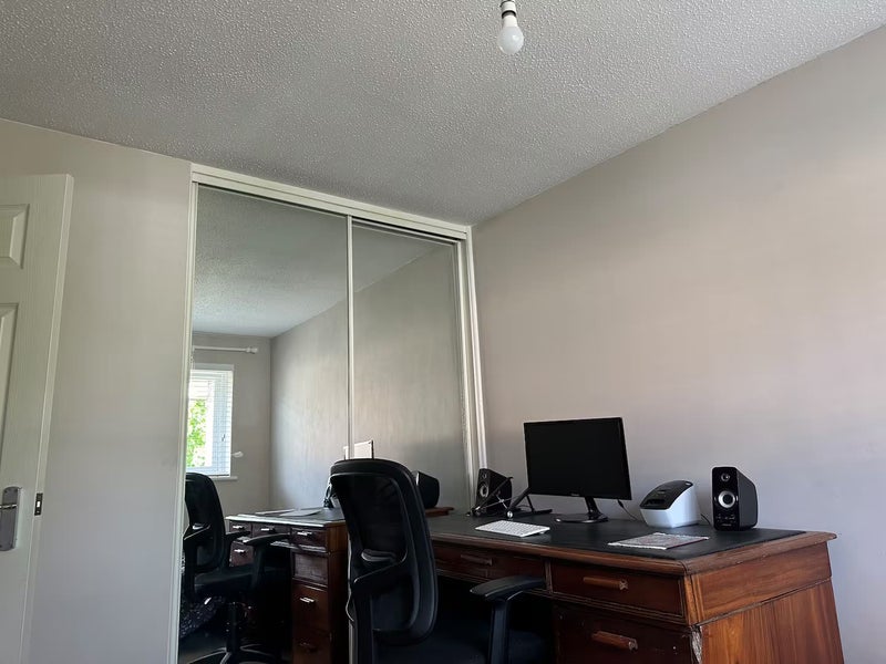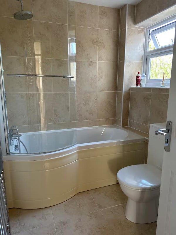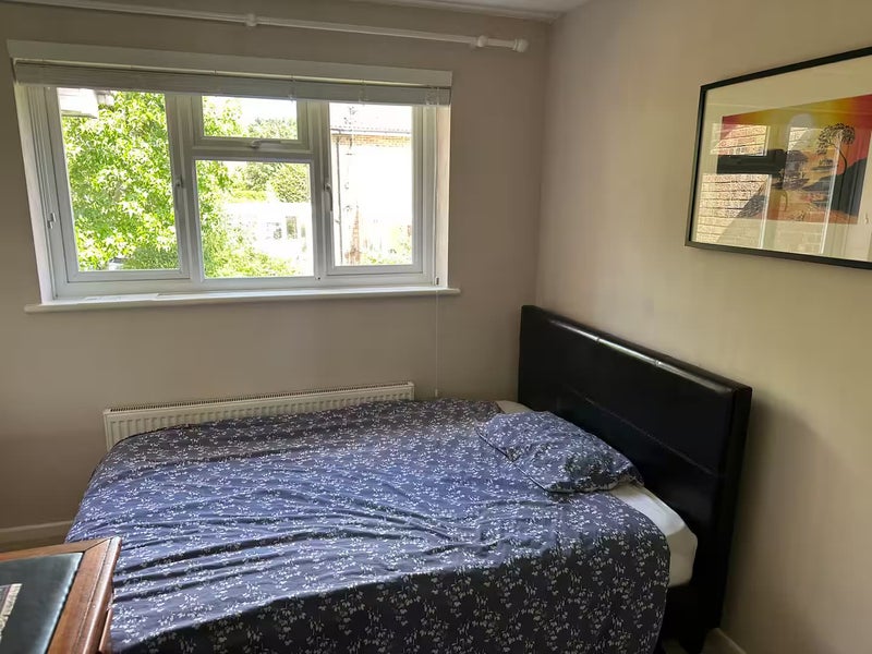 The bright, comfortable spare room comes with a desk, and fitted wardrobes. ideal for working or studying. You'll have access to a shared living room, fully equipped kitchen, and a lovely garden for relaxing outdoors. Two friendly cats are part of the household, so you’ll need to be pet-friendly!