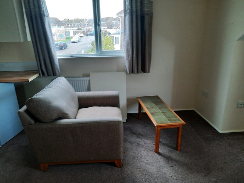 Room has bed, wardrobe, drawers, TV point, sofa & table, kitchenette & ensuite