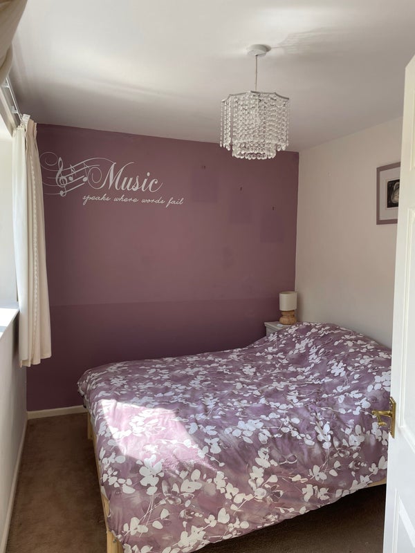 Bright and airy double bedroom in family home on the outskirts of Dorchester. The room overlooks a large back garden surrounded by mature trees. Shared bathroom, kitchen and dining room, and use of the garden. There is off street parking available on the driveway and storage space for a bike in the garage.