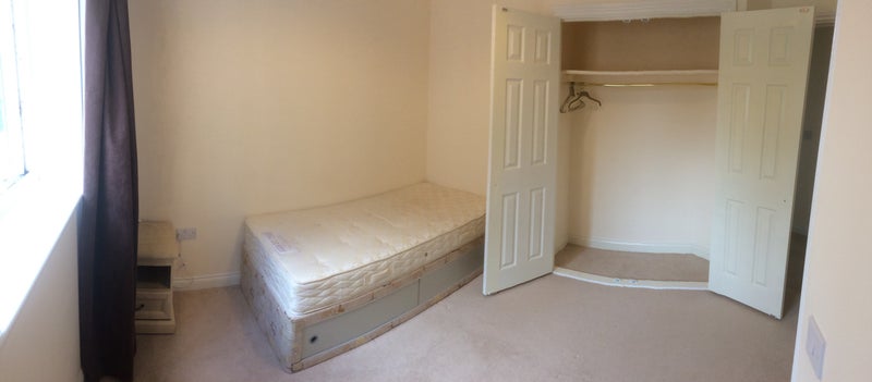 A double size room with own ensuite shower suitable for a single friendly happy person. Large built in cupboard. Economy 7 heating.