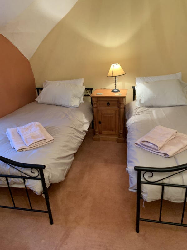 Vinny Cottage is a charming grade 2 listed cottage under a thatched roof dating back to the 18th Century. Available for 4 weeks, possibly longer. It is situated opposite the Historic St Michaels Church, Owermoigne with parking outside the cottage. Upstairs there is a double bedroom and a twin room. Downstairs is a further double bedroom. The bathroom is downstairs with a bath and overhead shower. The kitchen with oven and microwave leads onto the secluded private garden. The lounge has a woodburning stove, which leads onto the sunroom. Wood can be purchased from a garden centre just a five minute drive away. The cottage is heated by electric heaters. Weymouth Beach is 6 miles away and the country town of Dorchester also 6 miles away. If you enjoy a hike, Ringstead Bay Is 3 miles away as the crow flies. Winfrith just 4 miles away. A cosy tranquil getaway near the Jurassic Park Coast. Owermoigne is a quintessential English Village tucked away from the hustle and bustle of modern day life, but with easy access to main routes and the coast. It is in the centre of the village, but still in the countryside. There is a tiny garage at the side of the cottage, ideal for storing bikes, paddle boards etc. So if you are city slicker and want all the mod cons and a sterile environment it is not for you. You may find a sheep or two at the back of the property and may be a pony! If you are really lucky you may find the odd spider in the house! If you do please do not complain., This is the countryside. 😁🌳