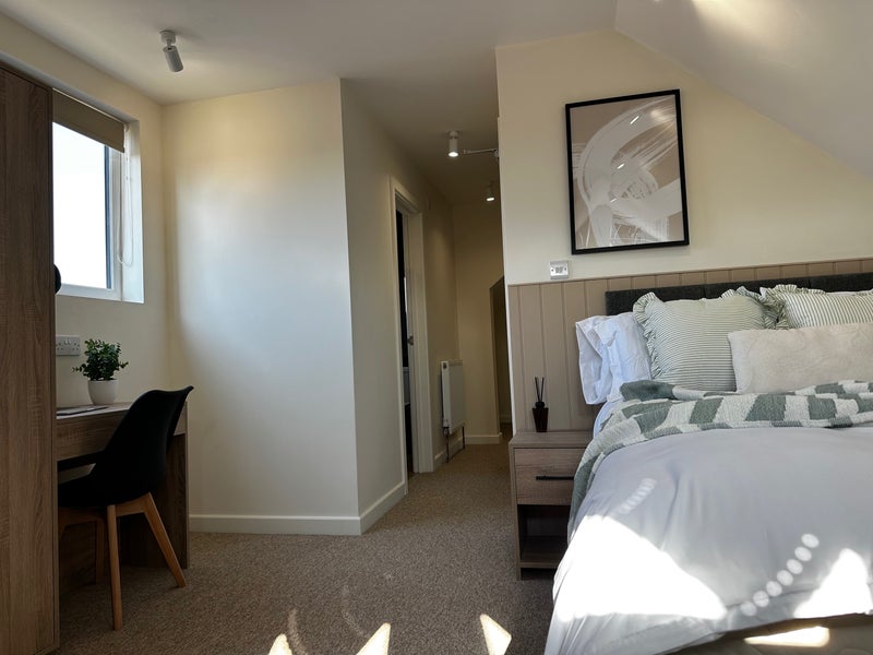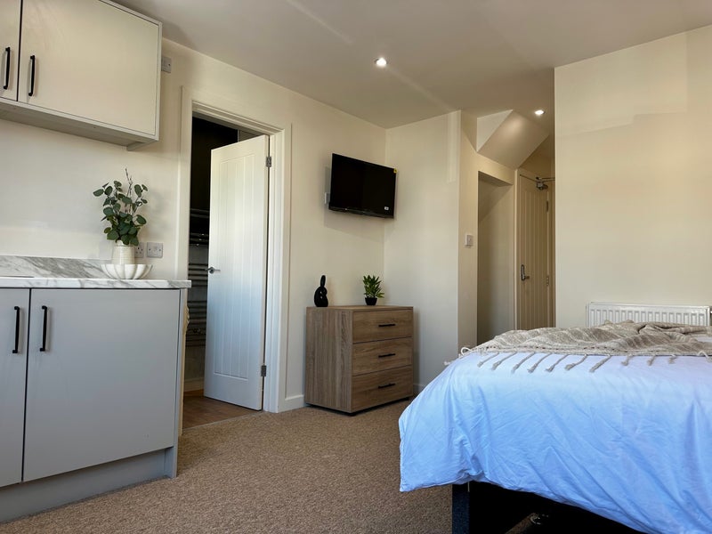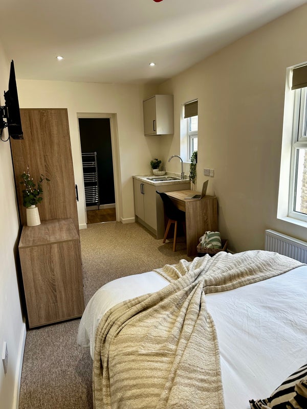 These rooms are far larger than typical house share rooms and offer studio-style living with private kitchenettes and modern en-suite bathrooms, making them ideal for working professionals who want both space and independence.