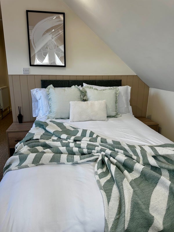 • Comfortable double bed with bedside tables and chest of drawers