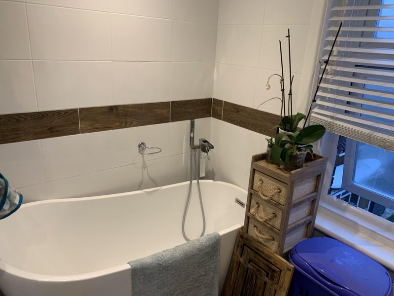 You would share the bathroom with 1 other person. The bathroom consists of shower, bath, toilet and sink.