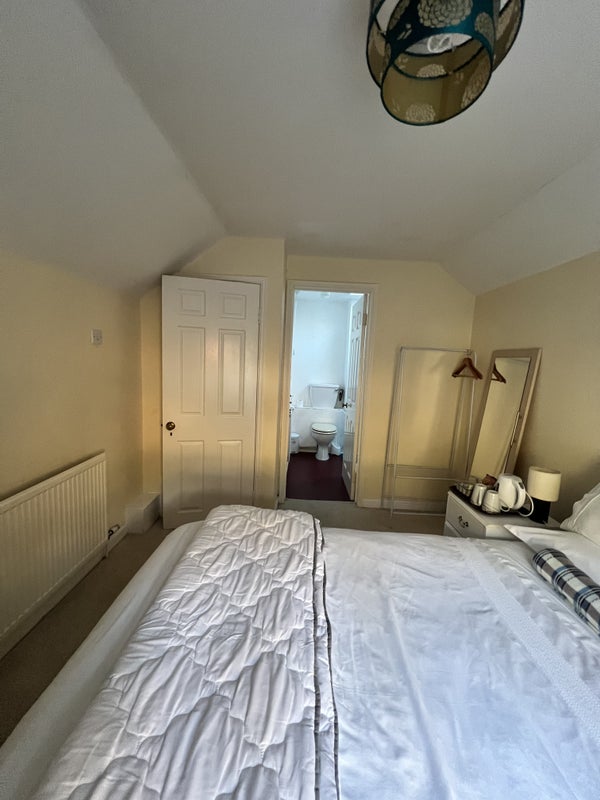 Double En-suite furnished room (Bedding optional) for rent in village location with off-road parking. Bills included with access to WiFi, TV, Garden, and kitchen facilities.. We work full time and sometimes work from home.