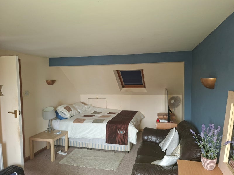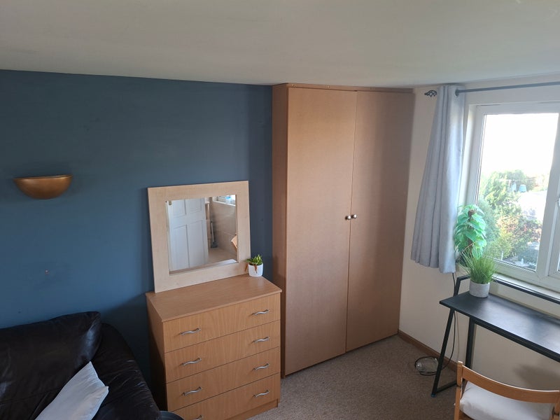 I have a very nice room to rent - large and private with en-suite shower, the whole of the top floor. Own allocated off road parking. King size bed, built in wardrobe, sofa, chest of drawers and desk. House has all mod cons, fast broadband and a cleaner twice a week for the shared areas. Would suit professional person.