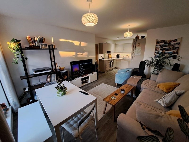 The kitchen/living area is modern and open plan, fully furnished, and I have a TV which is in the living room to share. The sofa is also a double sofa bed which is great for having guests to stay.