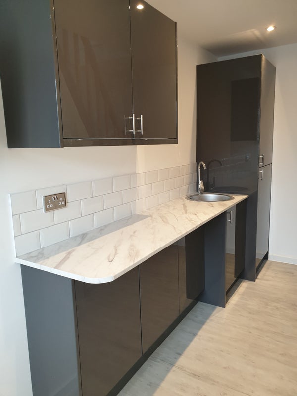 Own ground floor entrance leading into an open plan kitchen and small lounge area and separate shower room with toilet. Stairs lead up to a bright, spacious double bedroom.