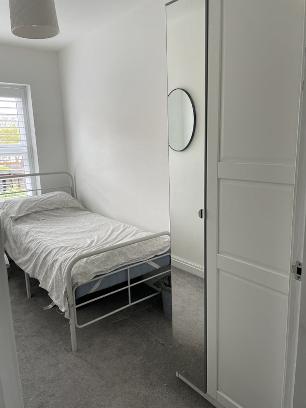 Available for short term let between January - March 26, or a Monday to Friday let. I’m a professional, hybrid working between home and office. I’m very sociable so often out, I’m friendly, happy to chat but equally will give space and have my own interests, friends etc. It’s a bright, cosy and new build flat. I would prefer to share with a female, as I’m a live-in female landlord. It is a small single hence it being more suited to a shorter term, mid week let. It is clean, Bright, cosy room in a modern ground floor flat. There is a communal shed, garden and unallocated car parking for use.