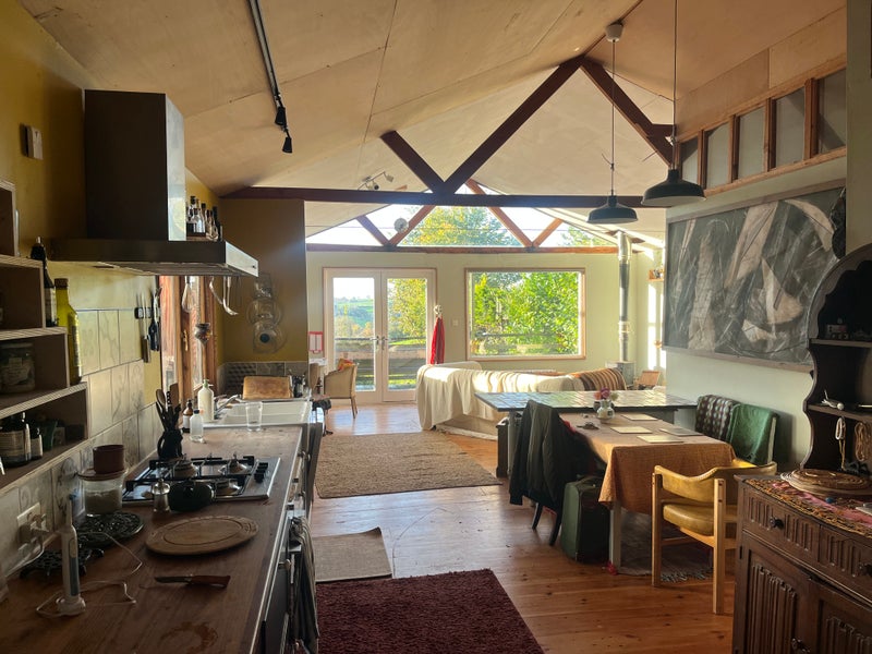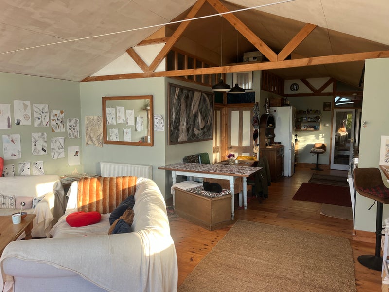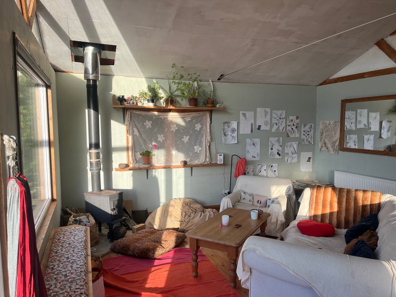 There is a very large and bright insulated front room ( South facing)with Central heating and a wood burner.