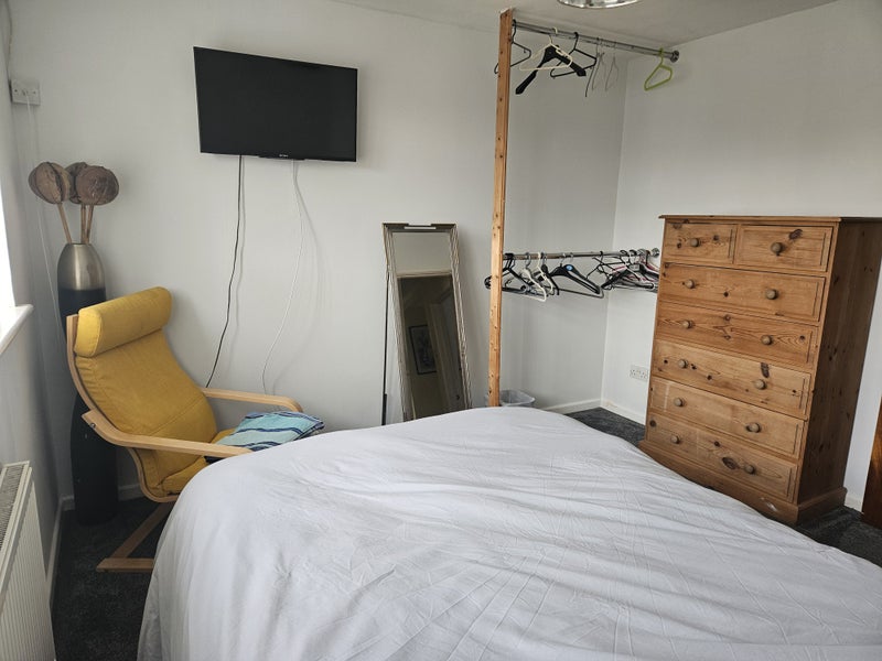 Large double room in a 4 bed detached house situated in a very quite residential area of Preston, Weymouth. Situated in an elevated position with views across Lodmoor Nature Reserve and Weymouth Bay. 10 min walk to public bus service, beach, beach café, post office and local store. 25 minute walk to the town centre and train station. Plenty of on street unregulated parking (no permits required)