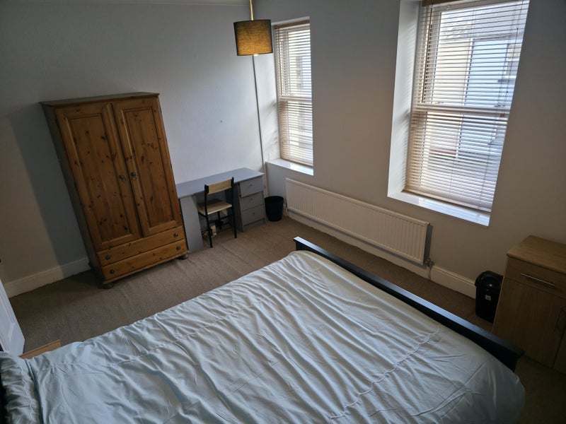 The room is fully furnished with bed, mattress and a wardrobe with plenty of space and natural light.