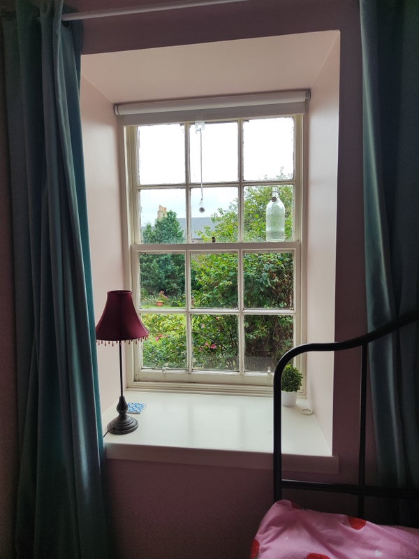 I have a lovely double room, which is fully furnished, available in central Dunbar. It is a 5 minute walk to the train station and faces a garden so is very quiet and calm.