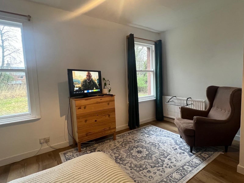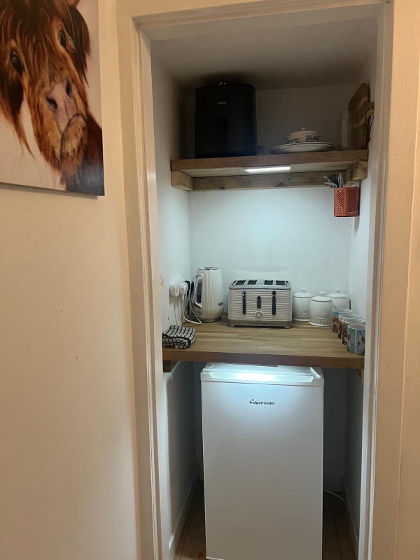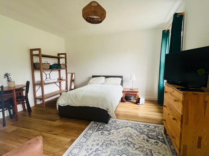Room with telly and cooking facilities and private bathroom, writhing rural village with pub/restaurant. Idilic woodland walks on doorstep and peaceful outdoor spaces.