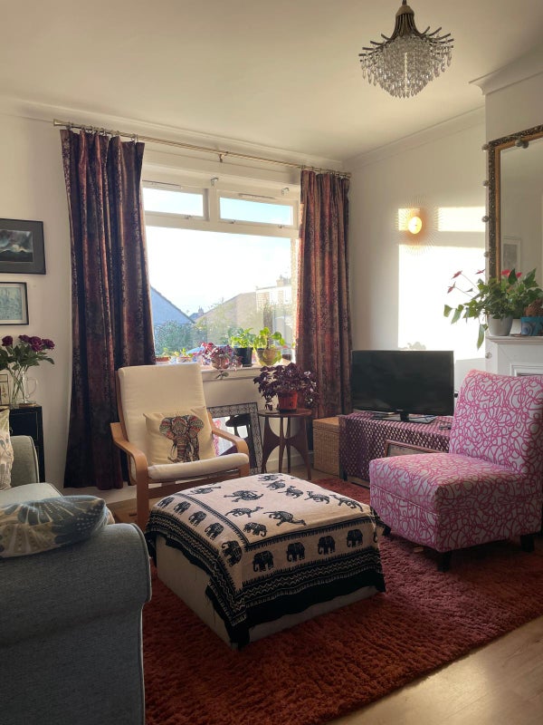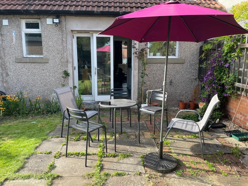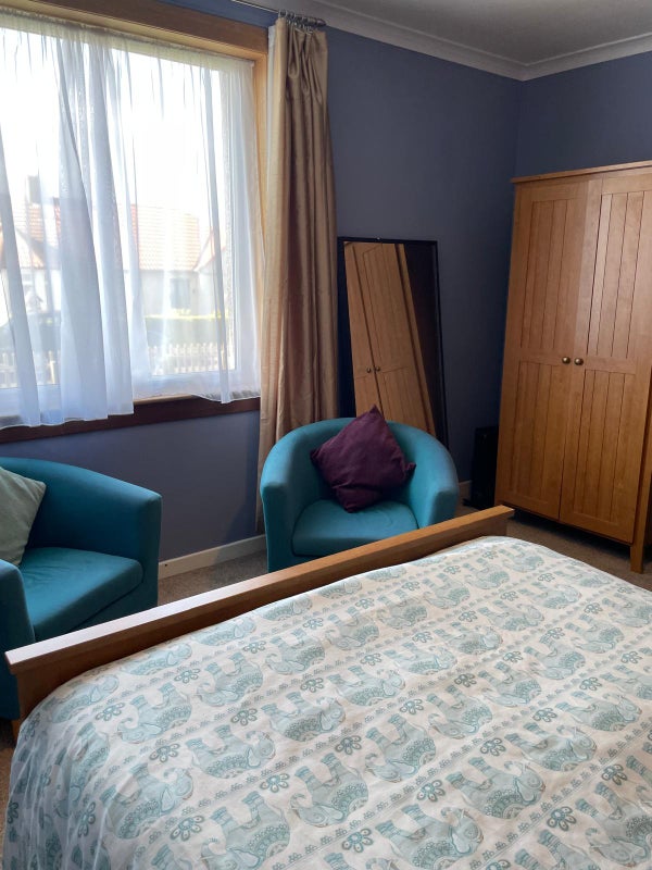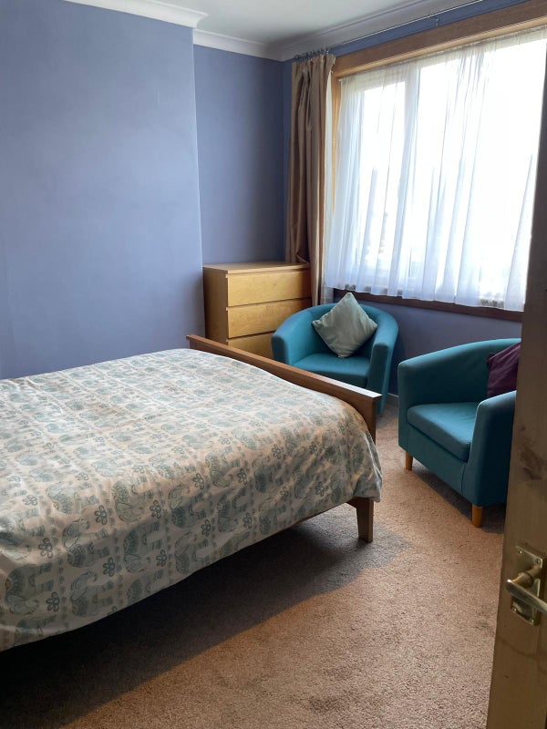 Shared shower room, well equipped kitchen (washing machine, microwave, airfryer etc), good size garden, part access to living room. Desk and chair available. Smoking permitted in the garden but not in the house.