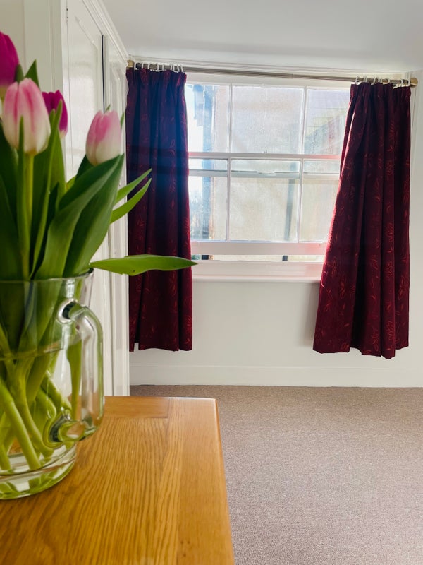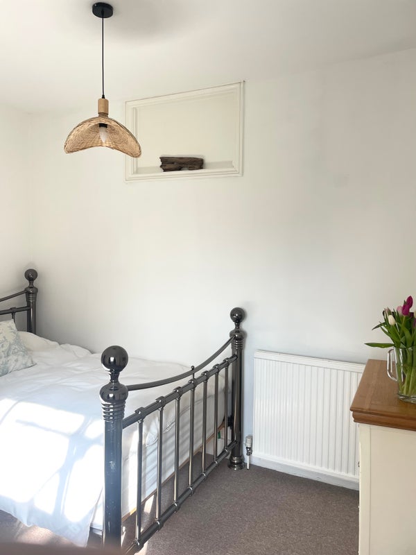 South facing light double room, new carpet, freshly painted, new mattress in our all female home, myself and my two daughters and 12 and 14. We live in a town house, the room is on the top floor so feels private with predominantly own bathroom. Shared kitchen with own fridge. We have a super friendly Vizla so a dog lover is helpful! Female only please. Professional no WFH. Monday to Friday also negotiable.
