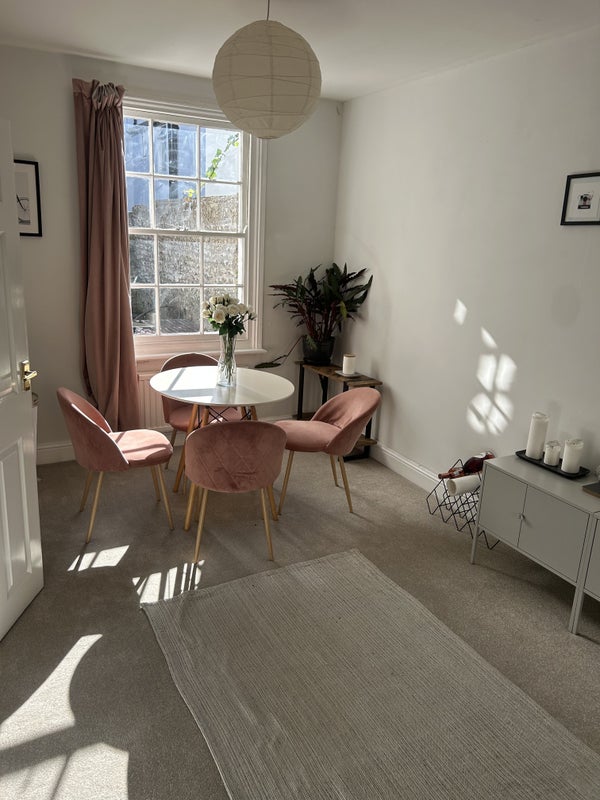 I have a bright and airy double bedroom that has a big window overlooking the pretty patio garden. It’s currently furnished.