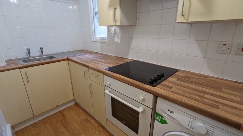 Large newly refurbished basement studio flat with separate kitchen. Council Tax, Water Rates & Heating included