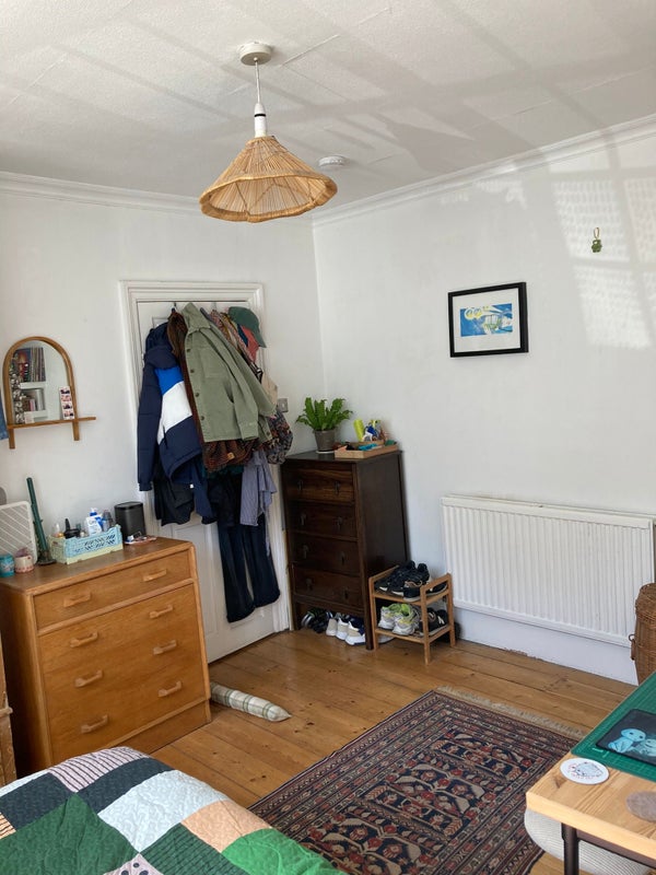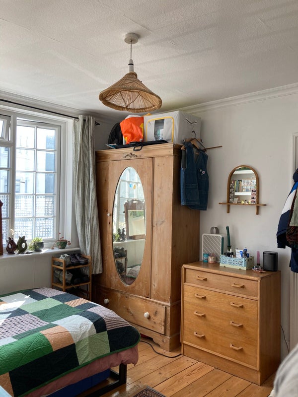 Large, double bedroom on the ground floor of the house, looking out onto the street. Comes with the wardrobe you see in the photos.