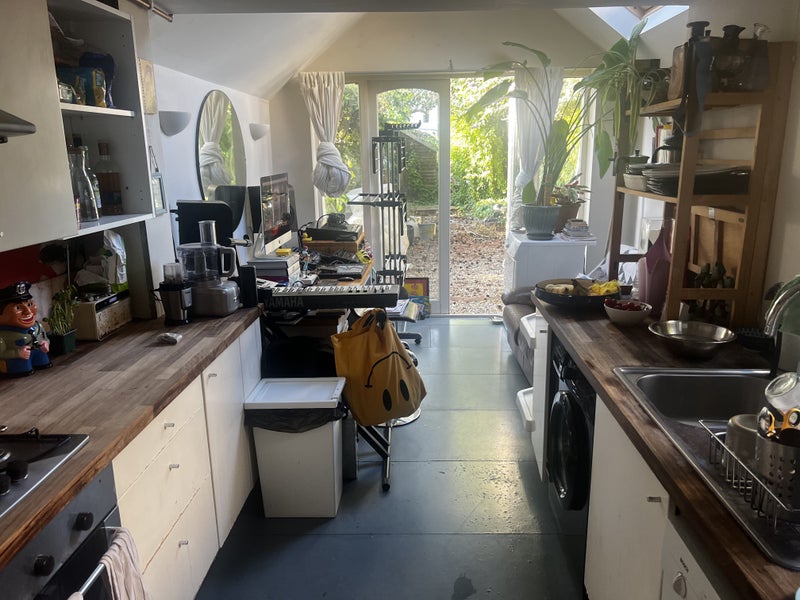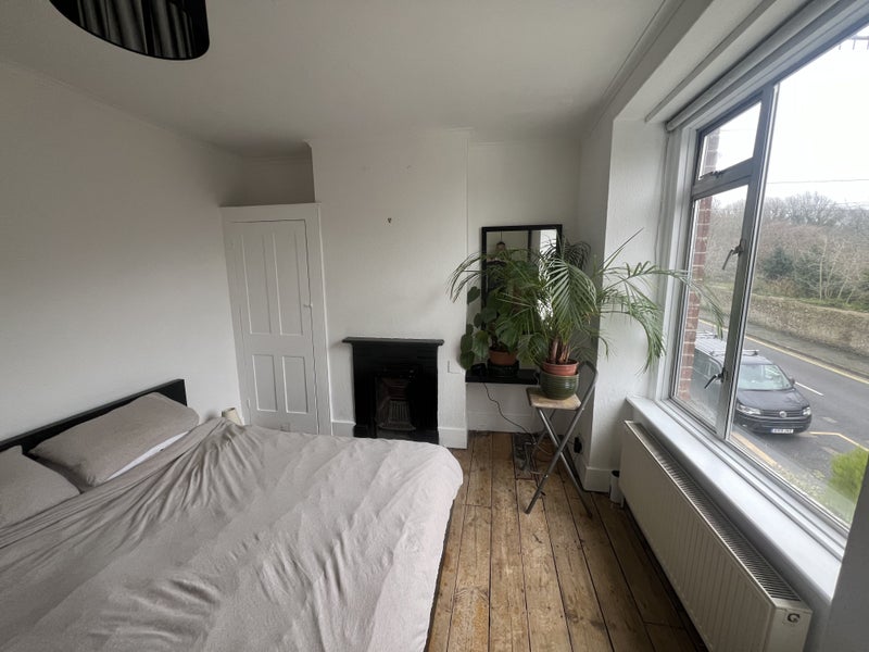 Come live with me in my house up the hill , sharing with myself , one other housemate and a cute friendly cat called Kevin . Its situated in the Lewes rd area , near the cemetery and racecourse , council tax band B . I make my living working in the music industry and I generally work from home . The room is sunny and spacious with a nice energy and a window overlooking the road , park and in the distance the sea . Furniture wise it has a lot of storage with two large wardrobes and a corner cupboard , the bed base can stay or go but you will need your own mattress ( the bed base is European king size ) . There’s generally music playing here but also plenty of peace and quiet also and , except on the rarest of occasions , it’s not a party house . Communal lounge , bathroom , kitchen and sunny garden . Theres also a dishwasher , washing machine and tumble dryer . It’s not a new build but a beautiful crooked house , a bit creaky and with plenty of character Under 10 mins walk to sainsburys but a local shop round the corner for basics and a garden centre a similar distance away which has a Waitrose food section . 30 min walk to the centre but buses at the bottom of the hill going in regularly every few minutes . Looking for a good natured , easy going , mindful , reasonably tidy person . no tobacco smoking in the house . All ages , genders , sexual orientation , nationalities considered . 700 pcm , all bills included . Drop me a DM with maybe a few words about yourself please