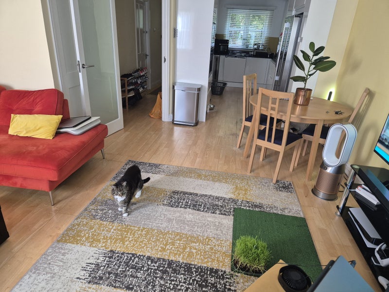 A quiet chilled house, one cat in residence to share with owner and partner and another friendly lodger. Exact date when the room is free tbc as the room is in use and the current lodger is looking for a new place as he is allergic to my cat, so please make sure cats are ok for you :)