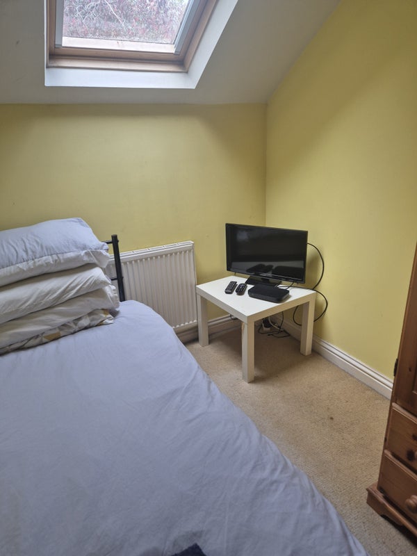 Room is furnished with a desk and chair, wardrope and single bed with side table, but a double bed will fit fine, and happy to discuss furniture needs and adjust the room set-up accordingly, including adding a sky multi-box with sports and f1 etc in the room etc.