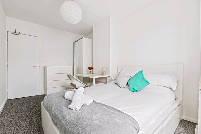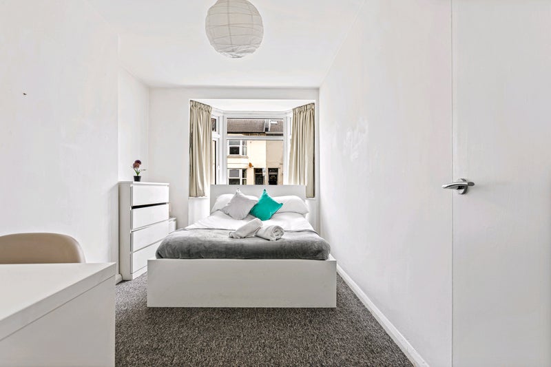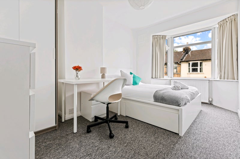 This is a luxury newly renovated house set across 4 floors. The ground floor consists of an open plan kitchen, dining and living area space. The rooms are fully furnished with a double bed and bedside table, a wardrobe, desk and chest of drawers. The further 3 floors consist of 2 bedrooms and a bathroom on each floor. Therefore you would only share a bathroom with one other person. One double room is a small double - the price per month reflects this.