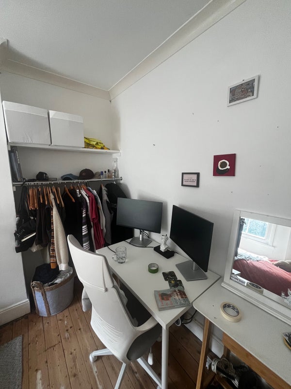 The room has space for a desk and fits a small double and a nice fireplace feature. The room will come unfurnished but you may be able to buy to buy the bed from the current tenant. The rent is £550 and all other bills usually come to around £80 a month but this can fluctuate depending on usage.