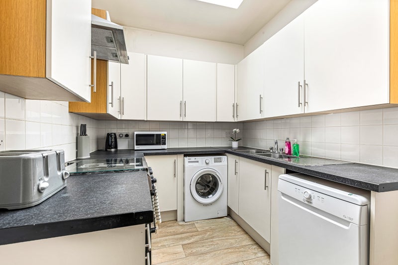 Bright, open-plan kitchen & lounge with plenty of cupboard space