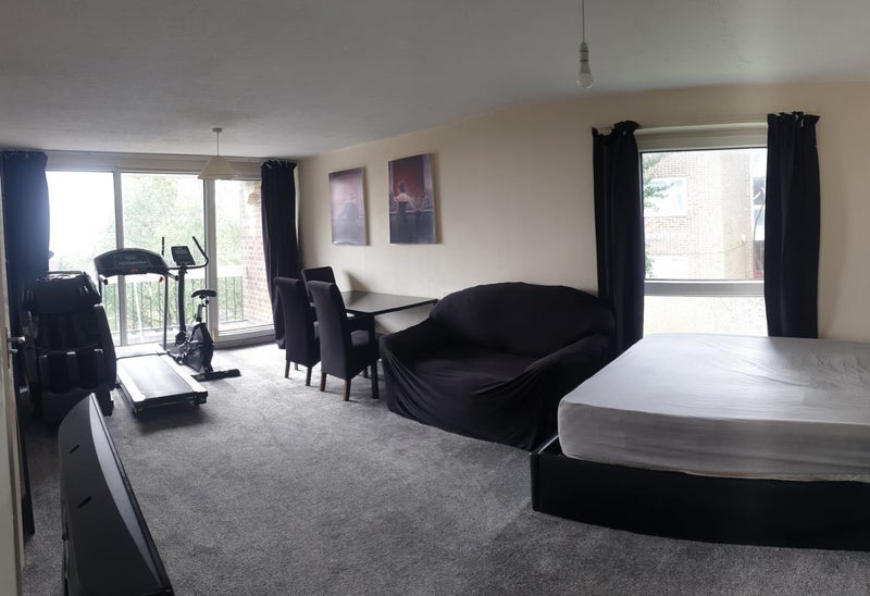Massive room (6.66m x 3.36m), with private kitchen (3.89m x 2.08m), private balcony, communal gardens